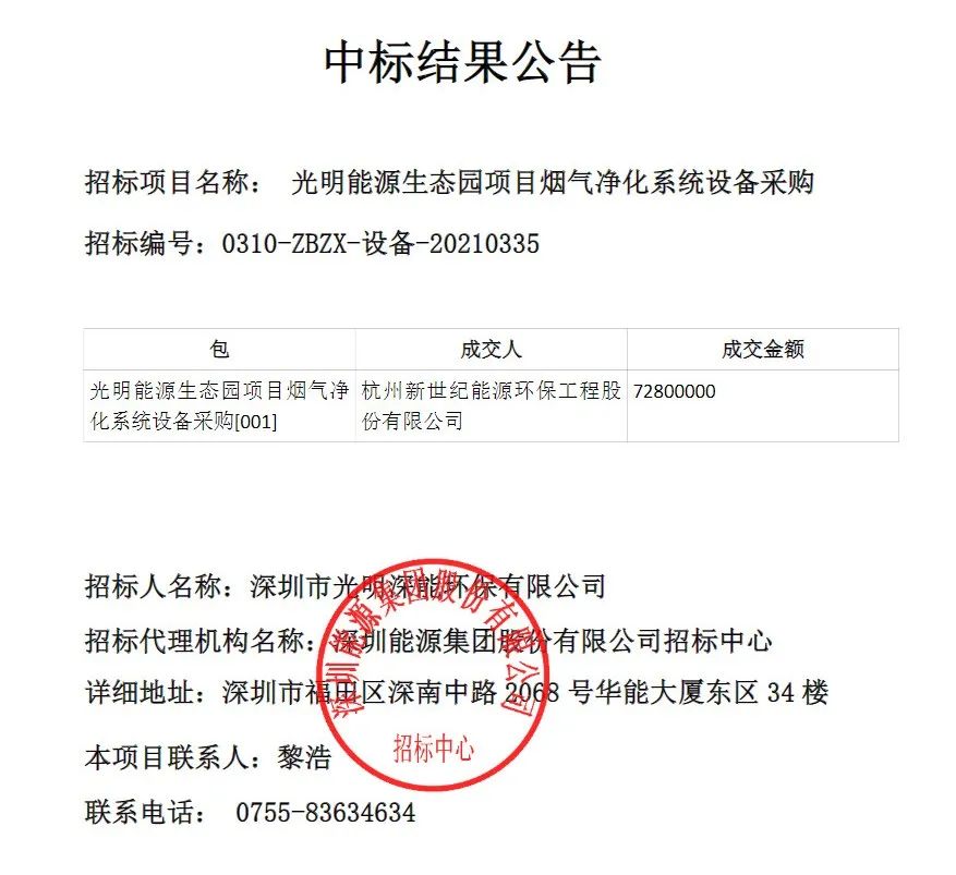 近日,中國(guó)大氣網(wǎng)從E20環(huán)境平臺(tái)標(biāo)訊采集系統(tǒng)E標(biāo)通獲悉,光明能源生態(tài)園項(xiàng)目煙氣凈化系統(tǒng)設(shè)備采購(gòu)項(xiàng)目發(fā)布中標(biāo)公告,杭州新世紀(jì)能源環(huán)保工程股份有限公司中標(biāo)該項(xiàng)目,項(xiàng)目成交金額為7280萬(wàn)元。