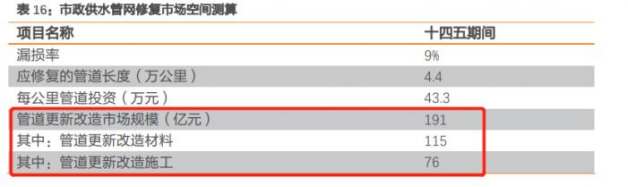 在地方層面,廣東、浙江、江蘇、福建、河南、山西等省份陸續(xù)在今年政府工作報(bào)告、擴(kuò)大有效投資的重大項(xiàng)目清單、部門專項(xiàng)文件中明確了城市管網(wǎng)建設(shè)和改造的規(guī)劃路線。比如,在去年遭遇洪澇災(zāi)害的河南,今年其政府工作報(bào)告提出,補(bǔ)齊城市防洪排澇短板。注重城市“里子工程”“避險(xiǎn)工程”建設(shè),構(gòu)建源頭減排、管網(wǎng)排放、蓄排并舉、超標(biāo)應(yīng)急的防澇工程體系。另一去年遭遇強(qiáng)降雨的省份山西,近日發(fā)布了《山西省城市地下管線管理辦法》。其中明確,新建、改建、擴(kuò)建的城市道路交付使用后未滿5年的,地下管線建設(shè)單位不得挖掘道路敷設(shè)地下管線。廣東在政府工作報(bào)告中提出,除了在老舊管道改造上發(fā)力,廣東還將加大管道的新建工程。“十四五”期間,全省將新建互聯(lián)互通管道299.3公里。浙江在今年政府工作報(bào)告中也明確,實(shí)施一批重大城市建設(shè)改造項(xiàng)目,積極推進(jìn)燃?xì)夤艿栏?、城市?nèi)澇治理等,提升城市功能。浙江省發(fā)改委表示,要加強(qiáng)防洪排澇工程等專項(xiàng)項(xiàng)目儲(chǔ)備和前期工作,積極爭取中央預(yù)算內(nèi)投資,支持重大項(xiàng)目建設(shè)。目前,該省“擬申請(qǐng)排水設(shè)施建設(shè)2022年中央預(yù)算內(nèi)投資項(xiàng)目”已公示。在給排水管網(wǎng)加速啟動(dòng)建設(shè)、更新的情況下,帶動(dòng)了相關(guān)管道行業(yè)的景氣度也大幅提升。以城市給排水系統(tǒng)為例,城市給排水系統(tǒng)主要用的是鋼鐵管(以球墨鑄管為主,常用于全口徑的供水管道建設(shè))和塑料管(塑料管常用于建筑內(nèi)的給排水)。其中,球墨鑄管的占比大約在50%以上。截至2022年1月14日,離心球磨鑄管與離心球磨鑄鐵價(jià)格之差接近2800元/噸,創(chuàng)下2011年以來的最高水平。這一價(jià)差表明離心球磨鑄管的需求較為旺盛。管道制造知名企業(yè),包括中國聯(lián)塑、新興鑄管、凱鑫管道、華生管道、亞大集團(tuán)等,都早早布局相關(guān)環(huán)保業(yè)務(wù)。以中國聯(lián)塑為例,從2015年開始便積極布局環(huán)保領(lǐng)域,目前已經(jīng)完成能夠開發(fā)和提供綜合管廊、海綿城市、智能管網(wǎng)等所需的全系列產(chǎn)品和相應(yīng)的一體化解決方案及服務(wù)。新興鑄管:除了傳統(tǒng)鑄造,新興鑄管在21年聯(lián)合華為公司、鯤鵬聯(lián)合創(chuàng)新中心簽署三方協(xié)議,共同開發(fā)智慧水務(wù)管網(wǎng)系統(tǒng),推進(jìn)國家級(jí)智慧水務(wù)管道團(tuán)體標(biāo)準(zhǔn)體系、國家級(jí)水務(wù)工業(yè)聯(lián)網(wǎng)平臺(tái)和水?dāng)?shù)據(jù)云平臺(tái)建設(shè)。凱鑫管道:在企業(yè)外貿(mào)發(fā)展戰(zhàn)略的指導(dǎo)下,凱鑫緊隨市場潮流,借助“互聯(lián)網(wǎng)+”,全面提升生態(tài)環(huán)境治理能力和治理體系現(xiàn)代化。加強(qiáng)智慧環(huán)境建設(shè),加強(qiáng)前沿技術(shù)在環(huán)境領(lǐng)域的應(yīng)用。 細(xì)分領(lǐng)域催生新機(jī)遇,探測與修復(fù)成為補(bǔ)齊管網(wǎng)短板關(guān)鍵