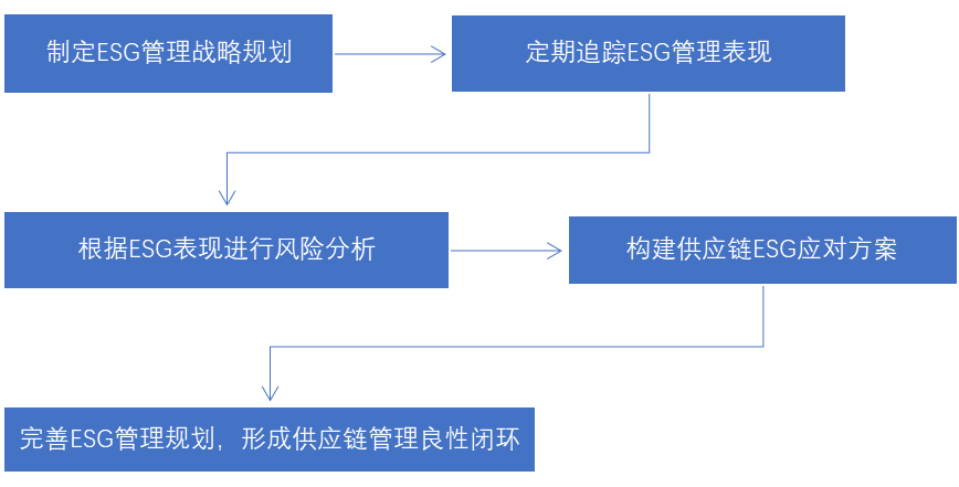 為了將ESG管理融入供應(yīng)鏈各個環(huán)節(jié),帶動供應(yīng)鏈上各個合作方的深度合作,需要為供應(yīng)鏈制定ESG戰(zhàn)略規(guī)劃;并且要從企業(yè)治理架構(gòu)的變革和規(guī)劃推動管理制度的變動,從而使ESG文化在企業(yè)中更好貫徹。規(guī)劃的實(shí)施還需要追蹤并評估有效性以保證規(guī)劃能夠?yàn)楣?yīng)鏈管理提供實(shí)時的長遠(yuǎn)的指導(dǎo)。因此需要定期對供應(yīng)鏈ESG執(zhí)行情況進(jìn)行核查,通過供應(yīng)鏈合作方的ESG表現(xiàn)以及風(fēng)險分析,來追蹤供應(yīng)鏈ESG管理情況。根據(jù)風(fēng)險分析的情況來構(gòu)建ESG應(yīng)對方案,同時ESG問題發(fā)生的因素變化也能夠被錨定為檢測標(biāo)準(zhǔn)從而預(yù)測風(fēng)險的未來演變。對ESG問題的關(guān)注和解決推動供應(yīng)鏈ESG規(guī)劃進(jìn)程,促進(jìn)企業(yè)整體ESG管理能力的提升。