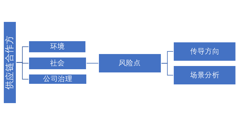 1.企業(yè)自查或委托專業(yè)第三方ESG咨詢,明確供應(yīng)鏈相關(guān)產(chǎn)業(yè)重要ESG風(fēng)險點(diǎn),進(jìn)行直接和間接風(fēng)險分析。通過內(nèi)部核查、外部資料參考、盡職調(diào)查等方式,從內(nèi)部明確供應(yīng)鏈ESG實(shí)踐、風(fēng)險和能力提升需關(guān)注的要素。
