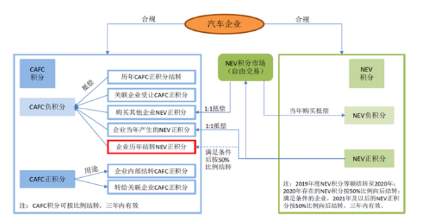 圖4:“雙積分”政策中兩種積分的結(jié)轉(zhuǎn)與交易