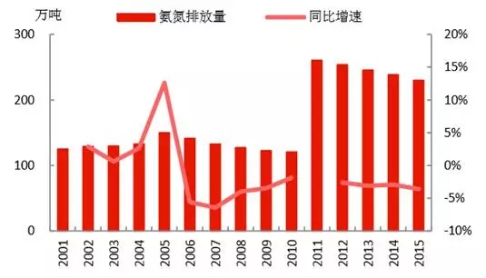 氨氮的排放量為230萬噸,且每年以3%左右的速度下降;