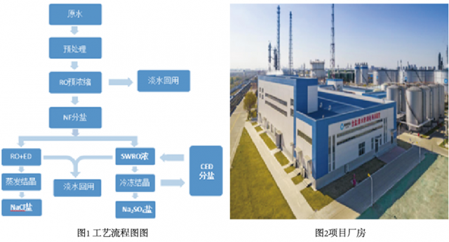水與鹽資源化利用。以膜分離濃縮組合技術(shù)為核心,結(jié)合預(yù)處理及結(jié)晶技術(shù),使高鹽廢水中鹽和水、硫酸鈉和氯化鈉較為徹底的分離,實(shí)現(xiàn)水的回用、鹽的資源化,且回收鹽品質(zhì)較高;外排母液少,結(jié)晶鹽資源化率高。