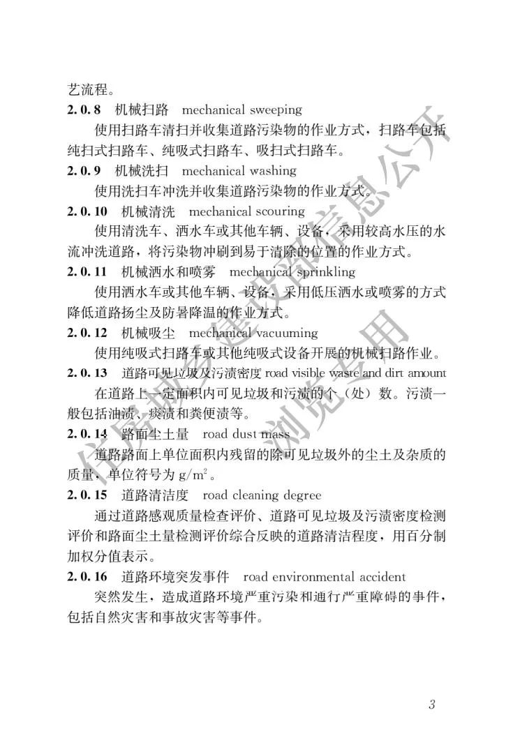 本標(biāo)準(zhǔn)由住房和城鄉(xiāng)建設(shè)部負(fù)責(zé)管理,由北京市城市管理研究院負(fù)責(zé)具體技術(shù)內(nèi)容的解釋。本標(biāo)準(zhǔn)主編單位為北京市城市管理研究院,參編單位為遼寧省朝陽(yáng)市環(huán)境衛(wèi)生管理局、西安市環(huán)境衛(wèi)生科學(xué)研究所、濟(jì)南市壞境衛(wèi)生科學(xué)研究所、太原市環(huán)衛(wèi)產(chǎn)業(yè)管理中心、廣州市城市管理技術(shù)研究中心、北京環(huán)境衛(wèi)生工程集團(tuán)有限公司、牡丹江市市容環(huán)境衛(wèi)生科學(xué)研究所。本標(biāo)準(zhǔn)在住房和城鄉(xiāng)建設(shè)部門戶網(wǎng)站(www.mohurd.gov.cn)公開,并由住房和城鄉(xiāng)建設(shè)部標(biāo)準(zhǔn)定額研究所組織中國(guó)建筑出版?zhèn)髅接邢薰境霭姘l(fā)行。附:《城市道路清掃保潔與質(zhì)量評(píng)價(jià)標(biāo)準(zhǔn)》