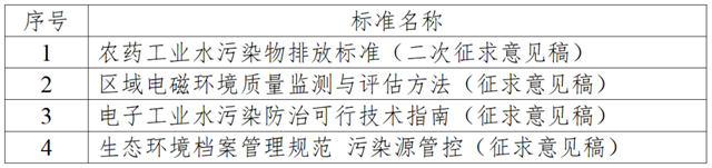 4項(xiàng)征求意見標(biāo)準(zhǔn),涉及1項(xiàng)控制標(biāo)準(zhǔn)、1項(xiàng)水污染防治技術(shù)指南、1項(xiàng)管理規(guī)范和1項(xiàng)監(jiān)測(cè)評(píng)估方法,具體見下表。