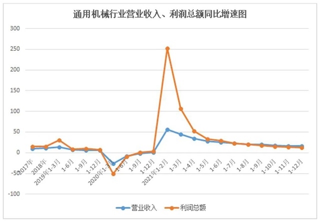 2022年,中國(guó)通用機(jī)械工業(yè)協(xié)會(huì)認(rèn)為,行業(yè)經(jīng)濟(jì)運(yùn)行將會(huì)保持2021年的平穩(wěn)運(yùn)行態(tài)勢(shì),雖然增速回落,但是收入利潤(rùn)增速仍將達(dá)到7%左右,出口交貨值增速達(dá)到5%左右。