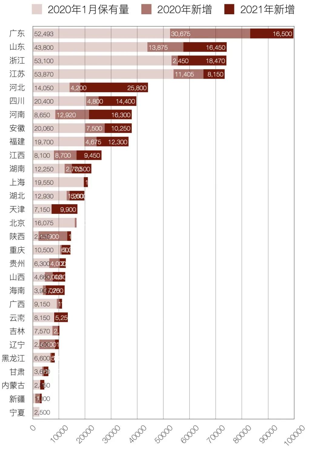 注:青海西藏為0,另外項目團隊未統(tǒng)計我國港澳臺地區(qū)情況。