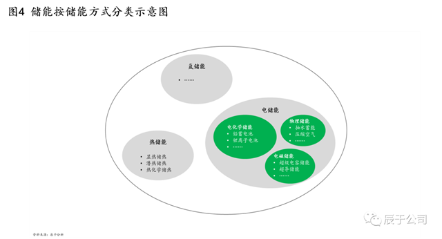 儲能有不同的分類方法,例如按儲能周期可分為長時(shí)儲能和短時(shí)儲能,更為常見的是按儲能方式分,包括電儲能、熱儲能、氫儲能,其中又包括很多更細(xì)分的種類(見圖4)。