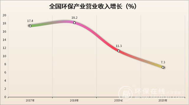 并且不可否認的是,隨著“十三五”規(guī)劃目標的圓滿完成,環(huán)保產業(yè)規(guī)模的增速確有波動。來自中國環(huán)保產業(yè)協會的《中國環(huán)保產業(yè)發(fā)展狀況報告(2021)》顯示,2020年全國環(huán)保產業(yè)營業(yè)收入增長約為7.3%??梢詫Ρ纫幌?,增速放緩的信號還是比較明顯的。