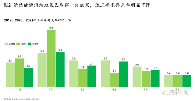 二是消納問題。電力消納曾制約我國光伏行業(yè)大規(guī)模發(fā)展,主要表現(xiàn)在三個(gè)方面:1)供需逆向分布,太陽能資源多分布于“三北”地區(qū),而用電負(fù)荷主要在中東部和南方地區(qū),由此帶來的跨省區(qū)輸電壓力較大;2)供大于需,近年在國家政策的支持下,光伏發(fā)電裝機(jī)保持著較快的增長,遠(yuǎn)超全社會(huì)用電量的增速,供需不匹配造成了較大的消納壓力;3)能源波動(dòng)性強(qiáng),光伏發(fā)電受自然條件影響存在比較大的波動(dòng)性,大規(guī)模并網(wǎng)后,給電力系統(tǒng)的調(diào)度運(yùn)行帶來了較大挑戰(zhàn)。可喜的是,在儲(chǔ)能技術(shù)、跨區(qū)域交易市場、“光伏+”場景日新月異之下,上述消納問題正逐步得以解決:例如2020年發(fā)布的《關(guān)于建立健全清潔能源消納長效機(jī)制的指導(dǎo)意見(征求意見稿)》鼓勵(lì)推動(dòng)電儲(chǔ)能建設(shè)和參與,2018年發(fā)布的《關(guān)于積極推進(jìn)電力市場化交易的通知》指出加快電力市場建設(shè),提高市場化交易比重,2020年發(fā)布的《關(guān)于加快新型建筑工業(yè)化發(fā)展的若干意見》指出促進(jìn)與建筑相結(jié)合的光伏發(fā)電系統(tǒng)應(yīng)用等。隨之而來的是,近三年來?xiàng)壒饴拭黠@下降(見圖2)。