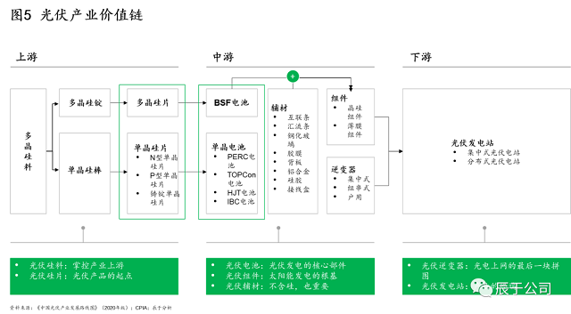 光伏細(xì)分市場多,上下游聯(lián)系緊密。從上游看,光伏硅料掌控著上游環(huán)節(jié),光伏硅片則是光伏產(chǎn)品的起點(diǎn);中游的光伏電池屬于光伏發(fā)電的核心部件,光伏組件則視為光伏發(fā)電的根基;下游的光伏逆變器是光電上網(wǎng)的最后一塊拼圖,光伏發(fā)電站則是產(chǎn)業(yè)的終端(見圖5)。