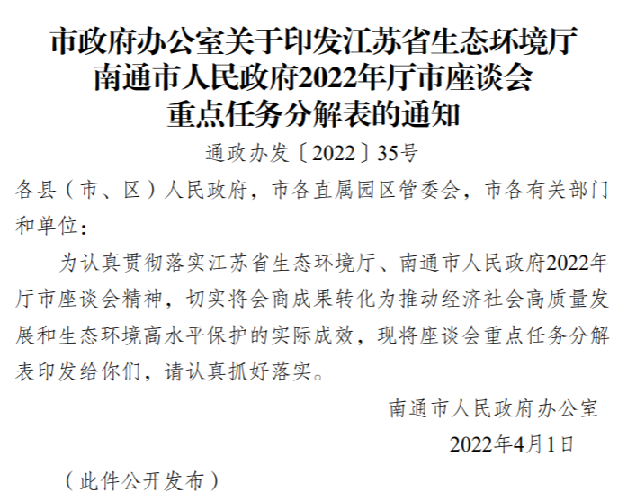 近日,南通市政府辦公室關(guān)于印發(fā)《江蘇省生態(tài)環(huán)境廳南通市人民政府2022年廳市座談會 重點任務(wù)分解表的通知》(以下簡稱為《通知》),《通知》指出將成立江蘇環(huán)保 集團南通區(qū)域公司、探索生態(tài)環(huán)境導向開發(fā)模式(EOD模式)等。