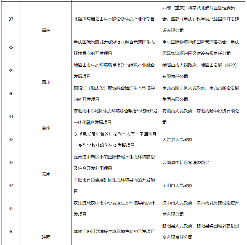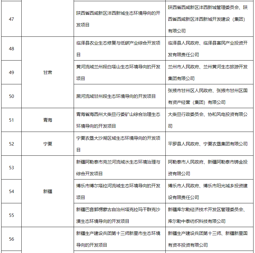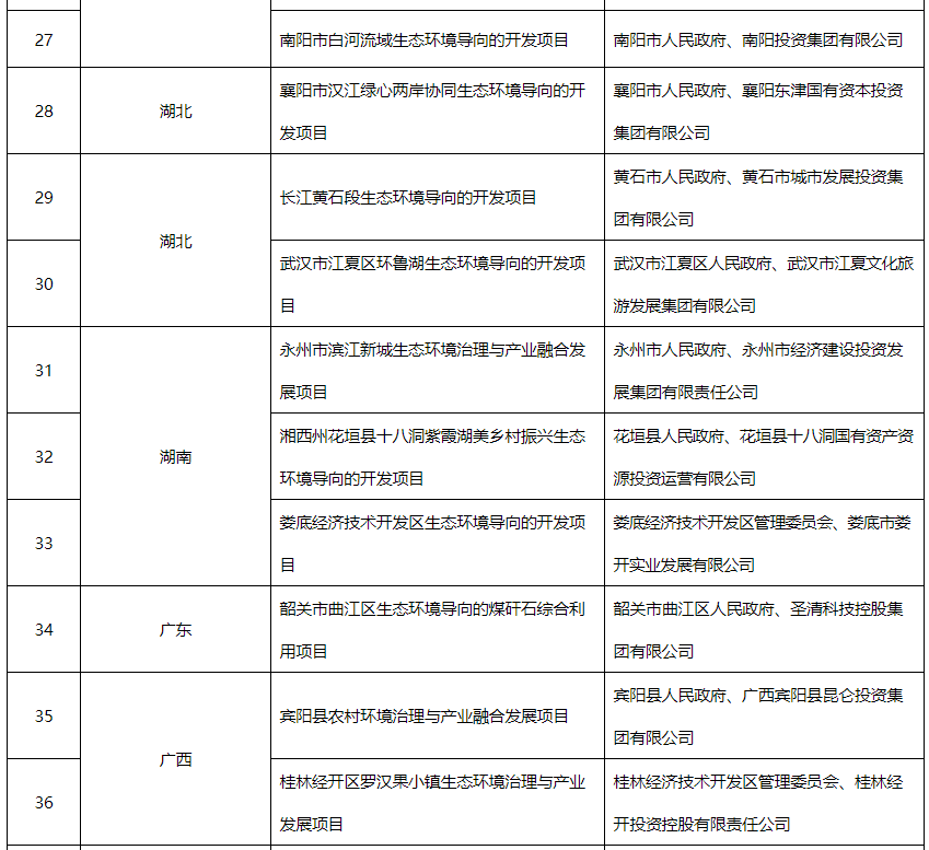 以下為第二批生態(tài)環(huán)境導向的開發(fā)(EOD)模式試點項目名單表: