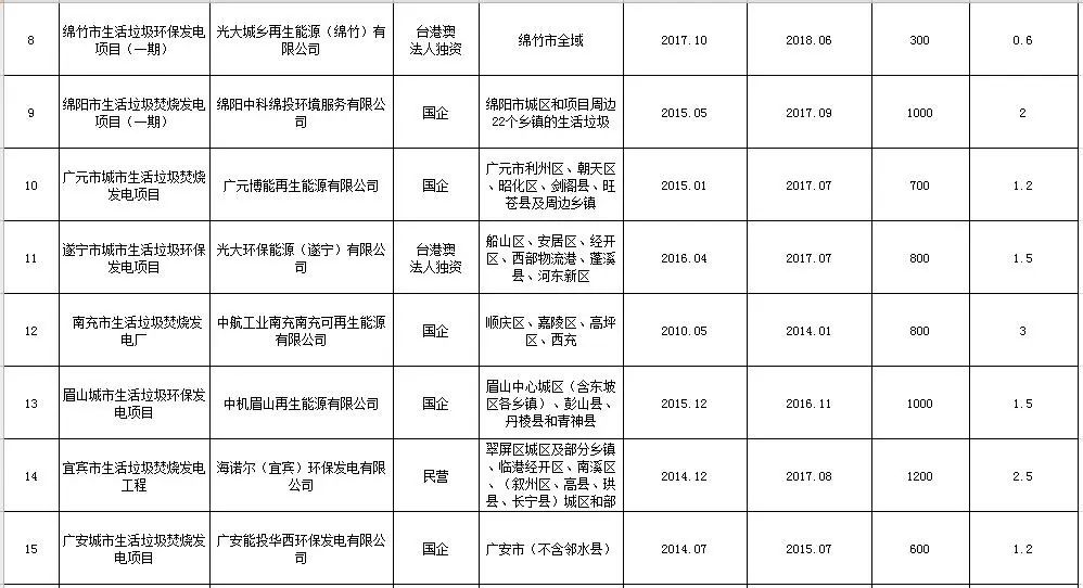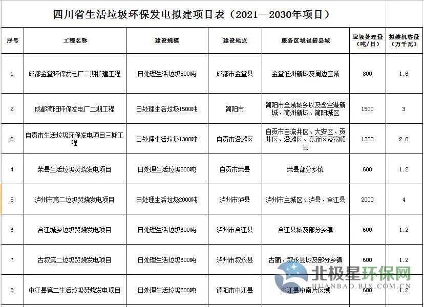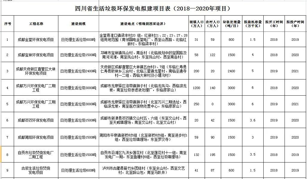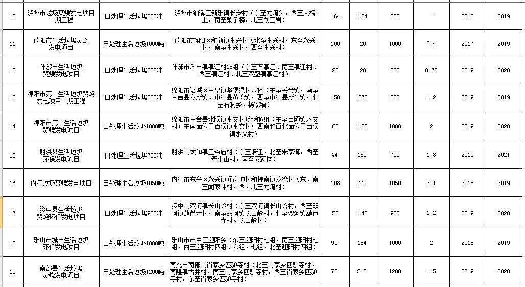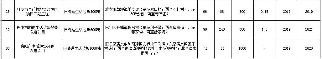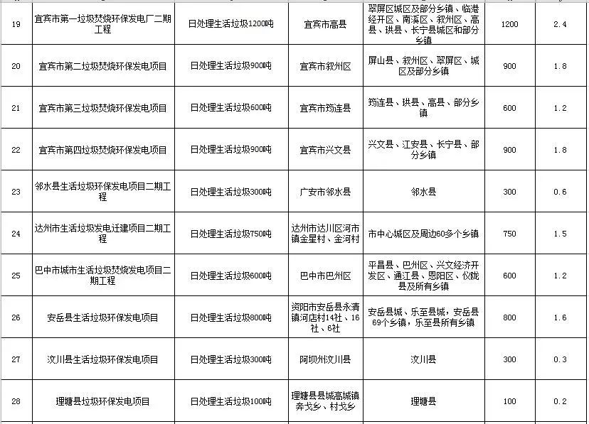 2019年7月,四川印發(fā)《四川省生活垃圾焚燒發(fā)電中長期專項(xiàng)規(guī)劃》?!兑?guī)劃》提出到2030年累計(jì)實(shí)施生活垃圾焚燒發(fā)電項(xiàng)目80個(gè),日處理生活垃圾7.105萬噸。其中,2018—2020年新建生活垃圾焚燒發(fā)電項(xiàng)目22個(gè)、擴(kuò)建8個(gè),2021—2030年新建生活垃圾焚燒發(fā)電項(xiàng)目20個(gè)、擴(kuò)建12個(gè),總規(guī)模5.265萬噸/日,總投資估算約238億元。