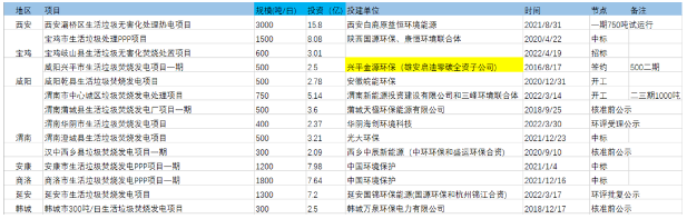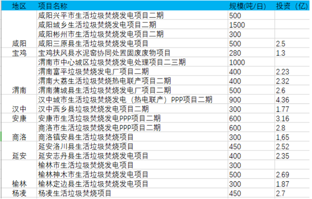 按照陜西省2020--2030年規(guī)劃以及動態(tài)調(diào)整,在上述26個項目之外,未來陜西省還將建設(shè)垃圾發(fā)電項目20個,總規(guī)模為10480噸/日,可統(tǒng)計到的總投資額超過35億元。其中咸陽以2800噸/日最多,渭南以2300噸/日次之。如下表﹕