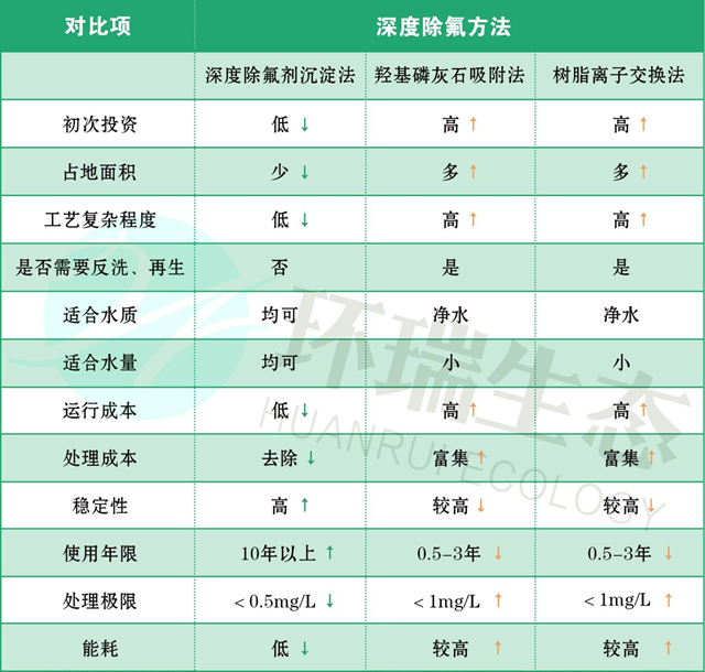 目前市面上經(jīng)過驗(yàn)證的深度除氟方法,能夠去除氟化物<1mg/L以下的主要包括離子交換法(樹脂離子交換法)、吸附法(Al2O3吸附法、羥基磷灰石吸附法等)、深度除氟劑沉淀法等。