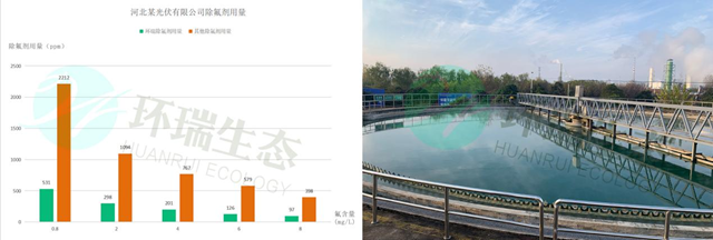 河北某光伏有限公司,排水水量3600噸/天,由于使用氫氟酸導(dǎo)致原水氟化物高達(dá)100mg/L,通過鈣鹽處理至8~14mg/L。先前使用市面某公司除氟劑,現(xiàn)使用“氟凈”牌除氟劑后投加量減少35%,為客戶節(jié)約20%成本。