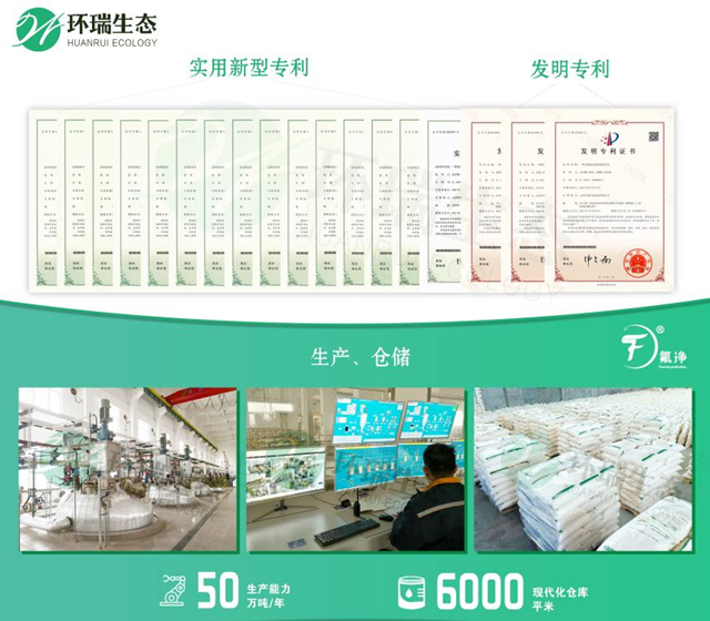 環(huán)瑞生態(tài)專注于氟化物深度治理,目前已經(jīng)累計授權(quán)除氟專利近30項(xiàng),其中除氟發(fā)明專利3項(xiàng);擁有國內(nèi)生產(chǎn)基地三處,產(chǎn)能達(dá)到50萬噸/年。針對不同行業(yè)的含氟廢水,環(huán)瑞生態(tài)將定制不同的產(chǎn)品滿足客戶的需求,讓客戶省心、放心。