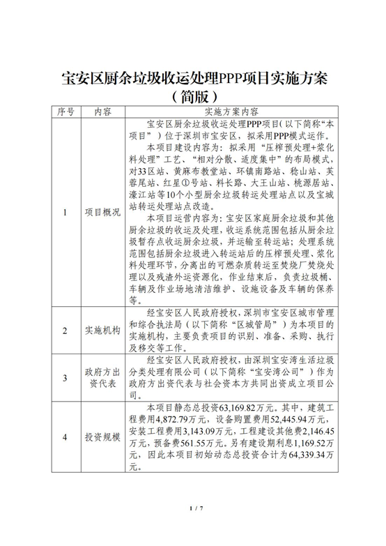 據(jù)悉,為構(gòu)建完善的廚余垃圾分類(lèi)投放、收集、運(yùn)輸、處理體系,推動(dòng)寶安區(qū)廚余垃圾收運(yùn)處理PPP項(xiàng)目盡快落地,去年8月《寶安區(qū)廚余垃圾收運(yùn)處理PPP項(xiàng)目實(shí)施方案》(征求意見(jiàn)稿)掛網(wǎng)公示,面向社會(huì)公開(kāi)征求意見(jiàn)。
