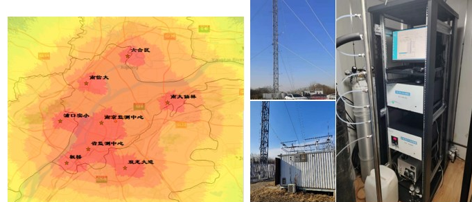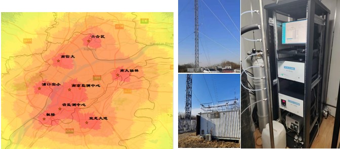 該溫室氣體試點(diǎn)監(jiān)測系統(tǒng)設(shè)在南京大學(xué)仙林校區(qū),利用現(xiàn)有觀測塔在75米、50米、25米三個(gè)高度進(jìn)行梯度采樣,實(shí)時(shí)監(jiān)測主要溫室氣體(CO2和CH4)濃度。該站點(diǎn)點(diǎn)位選址、儀器設(shè)備采樣分析及數(shù)據(jù)質(zhì)控均按照生態(tài)環(huán)境部《碳監(jiān)測評(píng)估試點(diǎn)工作方案》要求執(zhí)行,是江蘇省生態(tài)環(huán)境監(jiān)測系統(tǒng)中首個(gè)符合城市溫室氣體高精度監(jiān)測點(diǎn)位要求的站點(diǎn),填補(bǔ)了城市高精度溫室氣體監(jiān)測的空白,并首次實(shí)現(xiàn)了溫室氣體的梯度自動(dòng)監(jiān)測。