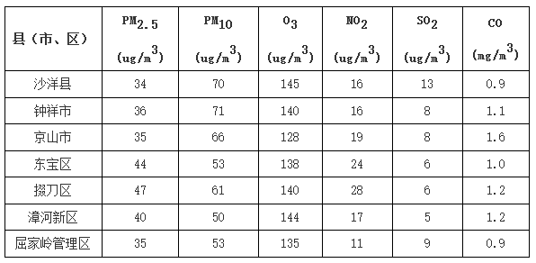 荊門市城市環(huán)境空氣質(zhì)量監(jiān)測(cè)網(wǎng)共設(shè)10個(gè)監(jiān)測(cè)點(diǎn)。其中,荊門中心城區(qū)設(shè)6個(gè)環(huán)境空氣質(zhì)量自動(dòng)監(jiān)測(cè)點(diǎn),測(cè)點(diǎn)分別為竹園小學(xué)站、掇刀站、石化一小站、西山林語站、龍泉中學(xué)南校站和漳河新區(qū)鳳袁路站;鐘祥市、京山市、沙洋縣、屈家?guī)X管理區(qū)分別設(shè)置1個(gè)環(huán)境空氣質(zhì)量自動(dòng)監(jiān)測(cè)點(diǎn),測(cè)點(diǎn)分別為:鐘祥市長(zhǎng)壽路站、京山市輕機(jī)大道站、沙洋縣荷花路站、屈家?guī)X金色農(nóng)谷站。