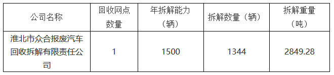 表8 2021年淮北市報廢機動車拆解企業(yè)情況