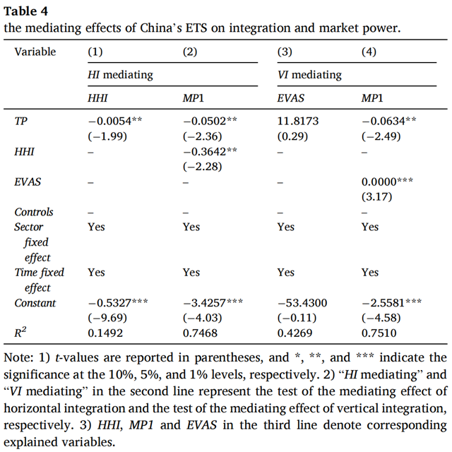 2.中國(guó)的ETS通過(guò)降低高碳行業(yè)的橫向整合水平,降低企業(yè)市場(chǎng)支配力;