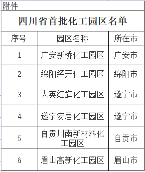 根據(jù)《通知》,共6家化工園區(qū)通過(guò)認(rèn)定,成為四川省正式公布的首批化工園區(qū)。