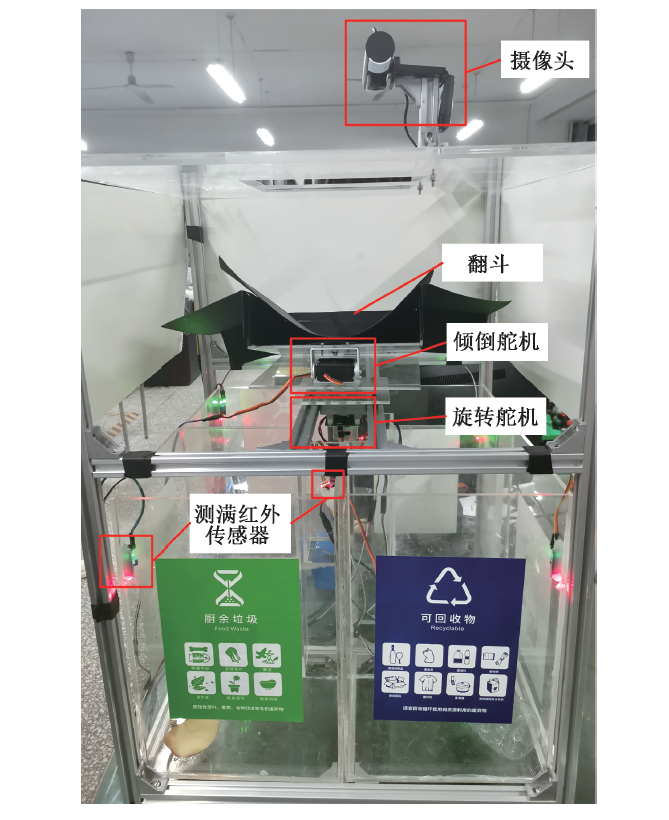 目前智能垃圾箱有多種形式,主要分為聲控方式和視覺方式2類。聲控方式需要投放者對著垃圾箱說出垃圾的名稱,垃圾箱判定該垃圾所屬類別后打開相應(yīng)垃圾箱,完成投放,如馬浚剛等設(shè)計了一種基于STM32單片機的語音識別智能垃圾箱,利用語音識別模塊ASR-MO8B、語音播報模塊WT2003S-16和sG90模擬舵機實現(xiàn)垃圾箱的智能化聲音識別,并且能語音控制對應(yīng)垃圾箱垃圾蓋的自動開閉;趙小芬基于語音識別算法,并將其應(yīng)用于垃圾分類,開發(fā)了一種軟硬件結(jié)合的嵌入式智能垃圾箱。基于視覺方式主要是采用目標(biāo)檢測識別的方法進行垃圾識別和分類,識別過程主要包括圖像預(yù)處理,特征提取和分類3個步驟,依據(jù)特征提取方式可分為傳統(tǒng)機器學(xué)習(xí)方法和深度學(xué)習(xí)方法。傳統(tǒng)機器學(xué)習(xí)方法是針對圖像提取其特征并進行匹配篩選,確定目標(biāo)種類,如黃浩然對采集到的垃圾圖像提取Hu不變矩和12個顏色空間特征作為特征向量,對比特征向量之間的相似性來確定垃圾種類;黃興華等通過改進局部二值模式(LBP)紋理特征算法,結(jié)合梯度方向直方圖(HOG)算法,提出一種新的特征融合方法,并利用支持向量機(SVM)進行垃圾分類識別; Irfan等采用Haar-Cascade方法檢測地板上的物體并將灰度共生矩陣(GLCM)和定向梯度直方圖(HOG)結(jié)合起來得到1組特征,利用支持向量機( SVM)將物體進行垃圾分類。深度學(xué)習(xí)法垃圾分類是利用近年來較流行的深度學(xué)習(xí)模型進行垃圾識別,如 Wang等提出的通過使用區(qū)域提議網(wǎng)絡(luò)和 ResNet 網(wǎng)絡(luò)算法訓(xùn)練Faster R-CNN開源框架,再通過 RPN(區(qū)域提議網(wǎng)絡(luò))層得到輸出; Kumar等研究了YOLO v3算法在Darknet神經(jīng)網(wǎng)絡(luò)框架中用于訓(xùn)練自制數(shù)據(jù)集,針對6種對象類別(紙板﹑玻璃、金屬、紙張﹑塑料和有機廢物)進行了訓(xùn)練,使用YOLO v3-tiny執(zhí)行了檢測任務(wù),以驗證YOLO v3算法的能力,結(jié)果表明:所提出的YOLO v3方法對具有一定的泛化能力。還有部分學(xué)者也進行了相關(guān)研究。
