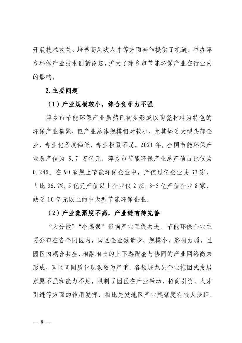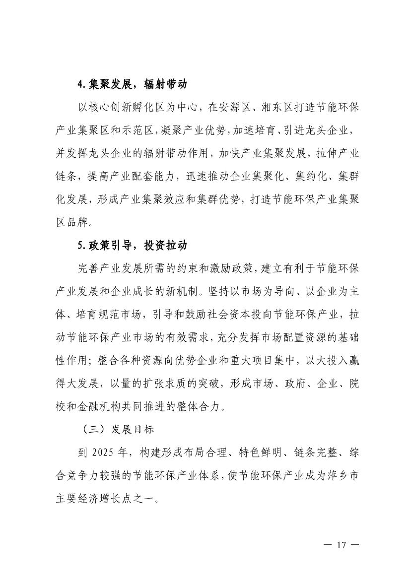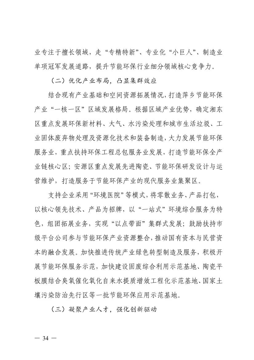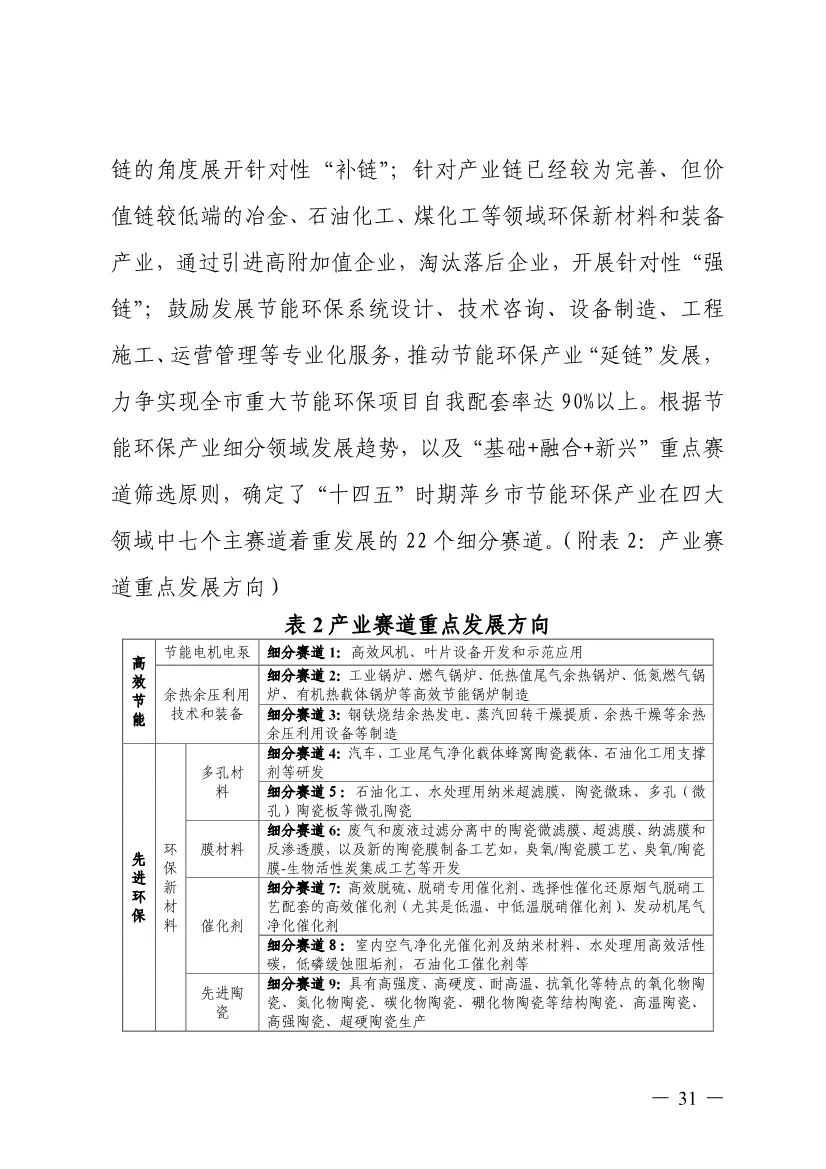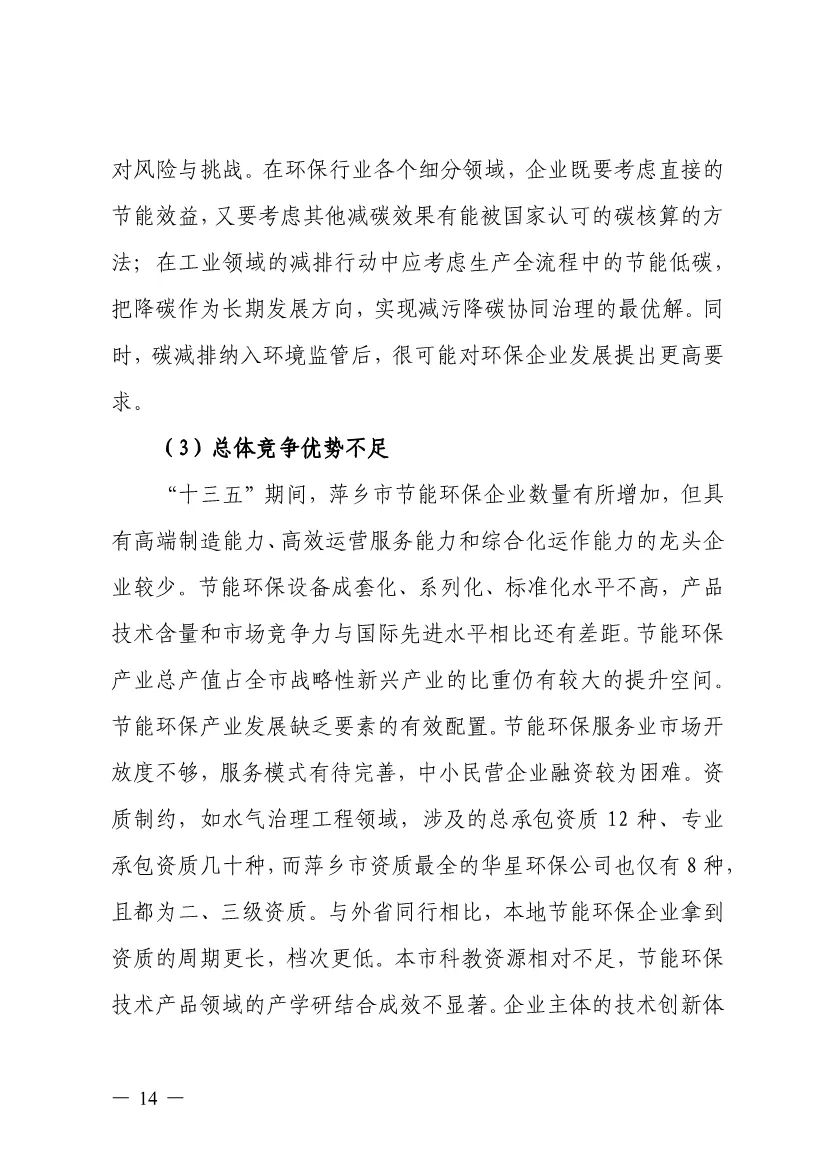 “十四五”期間,組建1-2個環(huán)保集團,以增強對國際先進技術裝備服務的承接能力,著力突破一批關鍵核心技術,強化集成應用示范,形成具有自主知識產權的整裝成套技術裝備,大幅提升節(jié)能環(huán)保技術和成套裝備本地化率,打造區(qū)域特色鮮明的湘東節(jié)能環(huán)保產業(yè)園。