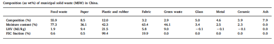 圖6.某研究中我國生活垃圾中各個(gè)組分的比例、熱值和化石源碳含量