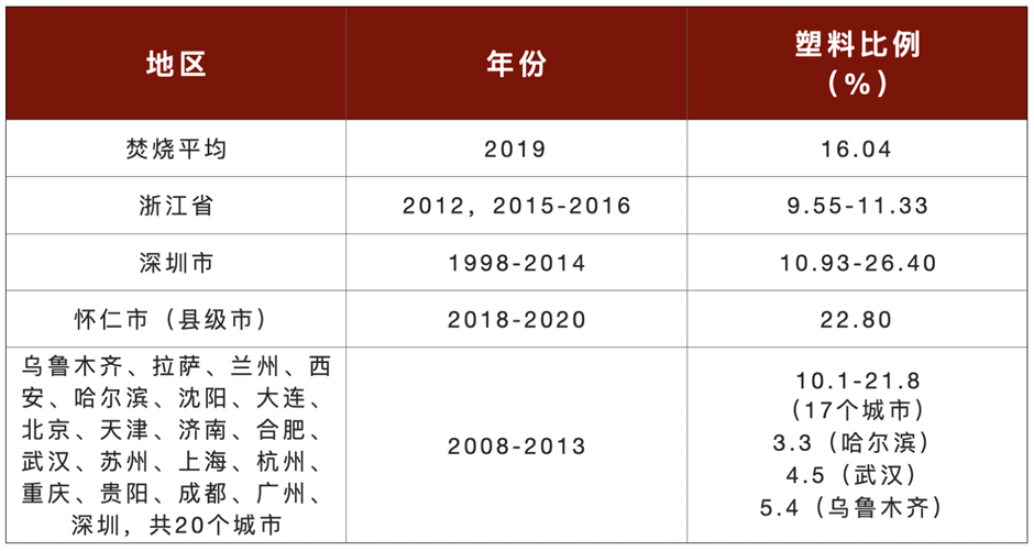 圖9.學(xué)術(shù)研究中我國生活垃圾中塑料比例
