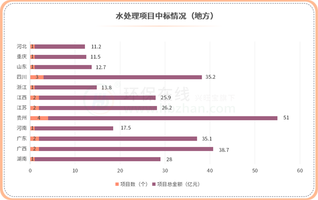 圖中也可以看出,水處理項目仍然是最多的類別,不過EOD項目以及生態(tài)環(huán)境綜合項目雖然數(shù)量少,但項目金額相當(dāng)可觀。