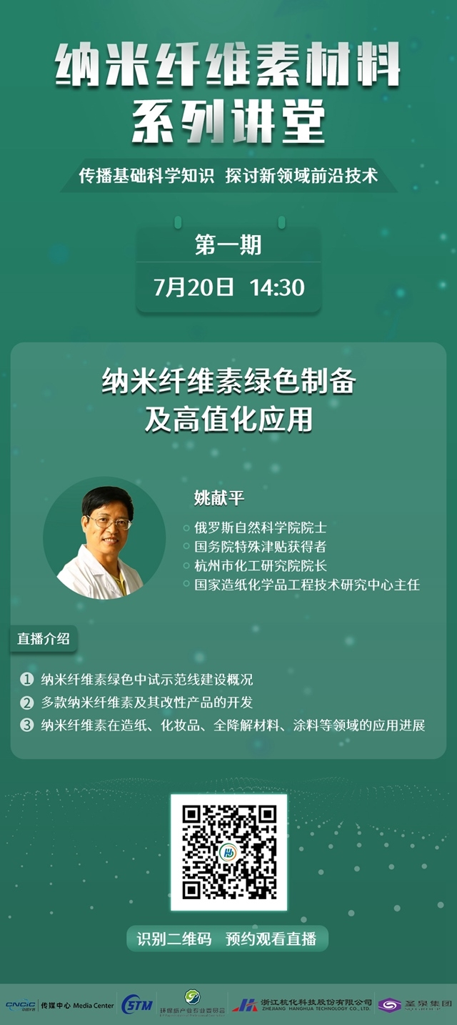 納米纖維素以植物纖維為原料,資源豐富,綠色低碳;具有輕質(zhì)高強(qiáng)、可生物降解等特點(diǎn),被視為“后碳纖維時(shí)代”的高性能前沿新材料;可應(yīng)用于全降解及輕質(zhì)高強(qiáng)材料、高阻隔生物材料、造紙、涂料、化妝品、醫(yī)藥化工等領(lǐng)域,未來發(fā)展空間巨大。為此,CSTM生物基化工材料技術(shù)委員會、環(huán)保紙產(chǎn)業(yè)專業(yè)委員會、北京生產(chǎn)力學(xué)會、杭州化工研究院、西南工業(yè)大學(xué)、南京林業(yè)大學(xué)特?cái)y手中國化工信息中心傳媒中心圍繞納米纖維素的新技術(shù)與高值化應(yīng)用,精心組織海內(nèi)外專家學(xué)者開設(shè)“納米纖維素材料系列講堂”,旨在傳播納米纖維素相關(guān)基礎(chǔ)科學(xué)知識,共同探討相關(guān)新領(lǐng)域的前沿技術(shù),加強(qiáng)學(xué)術(shù)界與工業(yè)界互聯(lián)互通,促進(jìn)產(chǎn)研對接,助力生物質(zhì)基功能材料行業(yè)高質(zhì)量發(fā)展。