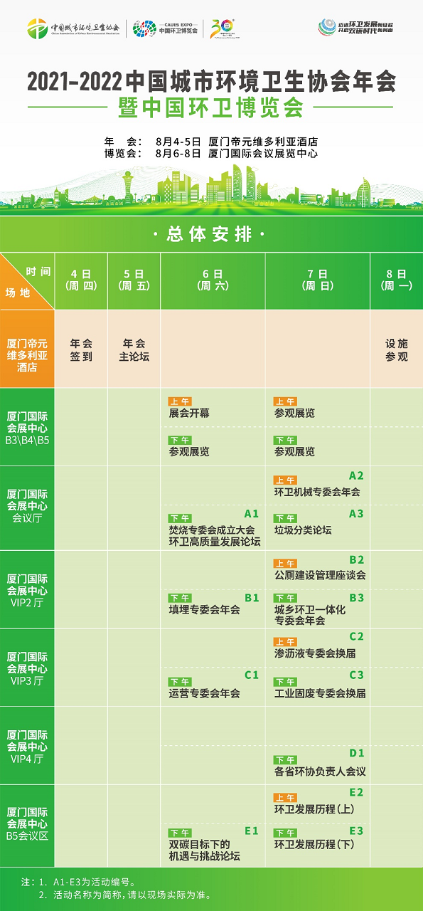 為深入促進(jìn)行業(yè)交流,進(jìn)一步提升環(huán)衛(wèi)發(fā)展水平,中國(guó)城市環(huán)境衛(wèi)生協(xié)會(huì)歷時(shí)兩年,潛心打磨的“2021—2022中國(guó)城市環(huán)境衛(wèi)生協(xié)會(huì)年會(huì)暨中國(guó)環(huán)衛(wèi)博覽會(huì)”將于8月4—8日在福建廈門舉辦。