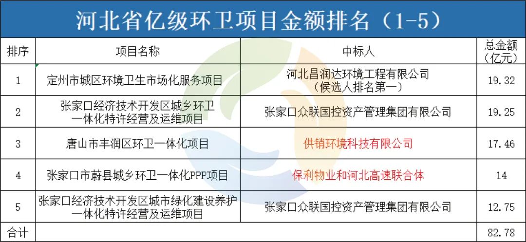 8月8日,超19億元的定州市城區(qū)環(huán)境衛(wèi)生市場(chǎng)化服務(wù)項(xiàng)目公布中標(biāo)候選人公示,河北昌潤(rùn)達(dá)環(huán)境工程有限公司排名第一;8月9日,約5.5億元三河市城鄉(xiāng)環(huán)衛(wèi)一體化項(xiàng)目又被北京環(huán)境有限公司和北京首創(chuàng)環(huán)境投資有限公司攜手?jǐn)孬@。至此,河北省今年已開(kāi)標(biāo)的億級(jí)環(huán)衛(wèi)項(xiàng)目總金額已超119億元,加上在招標(biāo)項(xiàng)目,河北省今年環(huán)衛(wèi)項(xiàng)目的釋放量已超130億元!不僅如此,進(jìn)入2022年之后,河北省在生活垃圾末端處置方面的發(fā)展也較為迅速,主要體現(xiàn)在生活垃圾焚燒項(xiàng)目、建筑垃圾資源化利用項(xiàng)目等方面。而這一切的“大爆發(fā)”,和地方“十四五”時(shí)期各項(xiàng)規(guī)劃及相關(guān)政策有密切聯(lián)系??梢源竽懙仡A(yù)測(cè),未來(lái)5年,河北將是環(huán)衛(wèi)企業(yè)競(jìng)相爭(zhēng)奪的“圣地”。項(xiàng)目釋放量突破130億,國(guó)資控股企業(yè)大放異彩