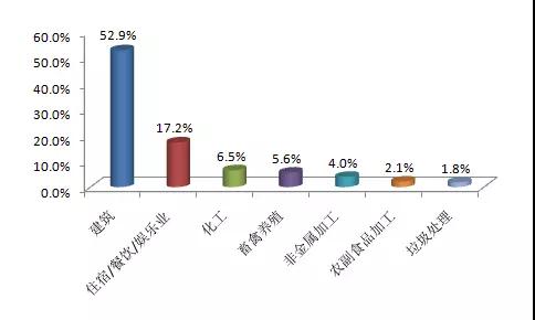 從全國(guó)舉報(bào)情況來(lái)看,公眾反映最集中的行業(yè)是建筑業(yè),占52.9%,其次是住宿/餐飲/娛樂(lè)業(yè)和化工業(yè),分別占17.2%和6.5%。8-10月舉報(bào)次數(shù)較多的企業(yè)有江西省南昌市麥園垃圾填埋場(chǎng)、寧夏回族自治區(qū)銀川市啟元藥業(yè)、廣東省廣州市云埔工業(yè)區(qū)、深圳市紅花嶺垃圾填埋場(chǎng)、下坪垃圾填埋場(chǎng)等。