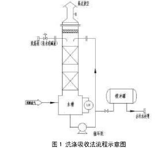 該法工藝操作簡單,吸收效果好,但耗水量大,同時又會產(chǎn)生大量的廢液,實際就是將廢氣污染轉(zhuǎn)化為廢水污染,整體運行成本較高。