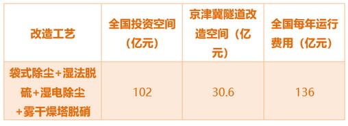 根據(jù)《陶瓷工業(yè)污染物排放標準》(GB25464-2010)修改單(征求意見稿)編制說明,陶瓷生產(chǎn)企業(yè)需要投入袋式除塵、濕法脫硫、濕電除塵、噴霧干燥塔脫硝等,一條陶瓷生產(chǎn)線的大氣污染治理設(shè)施投資在600萬元以上,每年的運行維護費用約400萬元。全國的投資市場為204億元,假設(shè)改造的成本是新建投資的50%,京津冀的生產(chǎn)線占全國的比例約為30%,則全國的改造空間為102億元,京津冀改造市場為30.6億元,如果陶瓷生產(chǎn)線全面運行,每年費用將達到136億元。