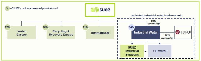 看重了GE水處理在工業(yè)水領(lǐng)域的優(yōu)勢,蘇伊士環(huán)境聯(lián)合加拿大基金公司Caisse de dép?t et placement du Québec (CDPQ)以32億歐元收購了GE的全部股權(quán),兩家將組成合資公司,其中蘇伊士環(huán)境持股70%。Jean-Louis Chaussade先生透露,GE水處理的出售競標已經(jīng)進行好幾輪了,在第三輪也是最后一輪的對手就剩下了剛剛在去年年底收購了法國家具零售巨頭BUT的美國私募基金 Clayton, Dubilier&Rice。蘇伊士環(huán)境的財務(wù)主管Christophe Cross則表示收購一旦正式完成后蘇伊士將對其增資7.5億歐元。
