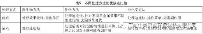 從表4可以看出,采用化學(xué)方法和微生物方法的處理費用較為接近,相對于電化學(xué)法更經(jīng)濟,且處理效果較好。電化學(xué)方法處理費用偏高,但其處理方式更便于操作。針對不同處理方法的優(yōu)缺點進(jìn)行總結(jié),結(jié)果如表5所示。