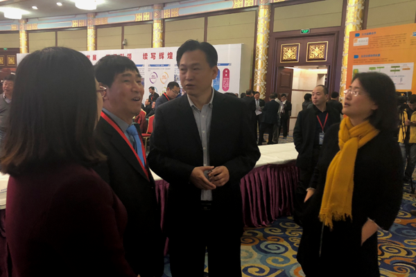 中國建筑材料聯(lián)合會、水泥協(xié)會喬龍德會長和科技部社會發(fā)展科技司鄧小明副司長參觀海螺創(chuàng)業(yè)展板