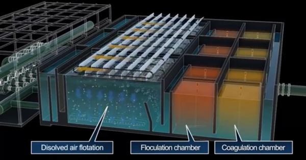 隨后進入DAF溶氣氣浮單元,去除油脂和其他初始進水中的固體。