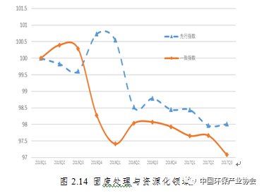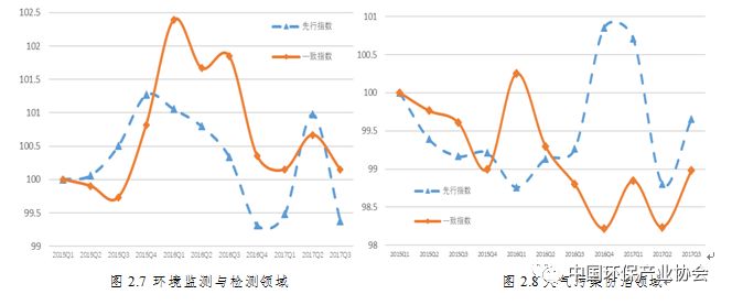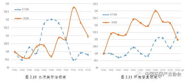 先行指數(shù)顯示,環(huán)境修復、大氣污染防治、固廢處理與資源化三領(lǐng)域下季度景氣有望向好;水污染防治、環(huán)境監(jiān)測與檢測兩領(lǐng)域下季度景氣或?qū)⑾禄?見圖2.10、圖2.11、圖2.12、圖2.13、圖2.14)。