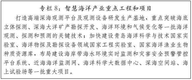 (五)現(xiàn)代海洋產業(yè)。拓展海洋智能信息化及海洋服務業(yè)發(fā)展新空間,培育一批前瞻性產業(yè),構建低消耗、低污染、高收益的現(xiàn)代海洋產業(yè)體系,鞏固擴大走在全國前列的優(yōu)勢地位。