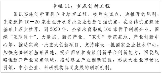 3.競爭優(yōu)勢大幅增強。到2020年,培育形成100家以上創(chuàng)新型骨干企業(yè),壯大一批機制靈活、創(chuàng)新突出的中小微企業(yè),打造一批技術含量高、核心競爭力強、特色優(yōu)勢明顯的產業(yè)鏈和產業(yè)集群,參與國內外分工的層次不斷提高,部分重要領域由跟跑、并跑向領跑轉變。