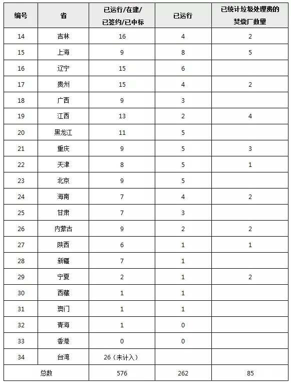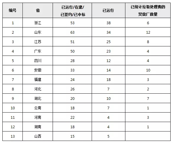 全國各省市垃圾焚燒發(fā)電廠建投及運(yùn)營數(shù)量