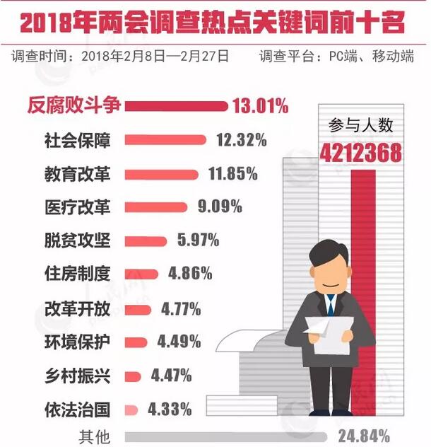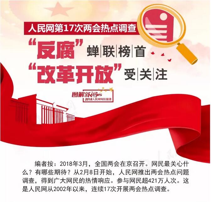 2018年3月,全國兩會將在北京召開,網(wǎng)民最關心什么?有哪些期待?而隨著環(huán)保政策的頻繁出臺,人民對碧海藍天的渴望更加強烈,環(huán)境保護問題也愈發(fā)引起人民的關注。人民網(wǎng)推出的兩會熱點調查中,“環(huán)境保護”進入前十名榜單,成為備受關注的熱點問題,而且其于2014-2018年五次上榜。