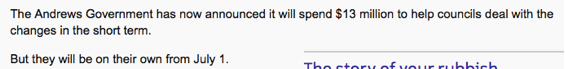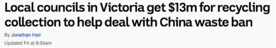 那些受到中國(guó) “洋垃圾“ 禁令影響的市政廳可以暫時(shí)喘一口氣了,日前,維州政府愿意出資1300萬(wàn)澳元幫助他們管理垃圾。但是這類援助只持續(xù)到今年7月1日。