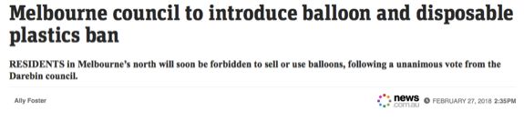 日前,作為推動(dòng)環(huán)保的一部分,墨爾本一市政廳將實(shí)行氣球和一次性塑料禁令。到那時(shí),墨爾本三個(gè)區(qū)的商戶和居民將很快被禁止出售和購(gòu)買氣球以及其他塑料制品,包括一次性食物餐盒和杯子。